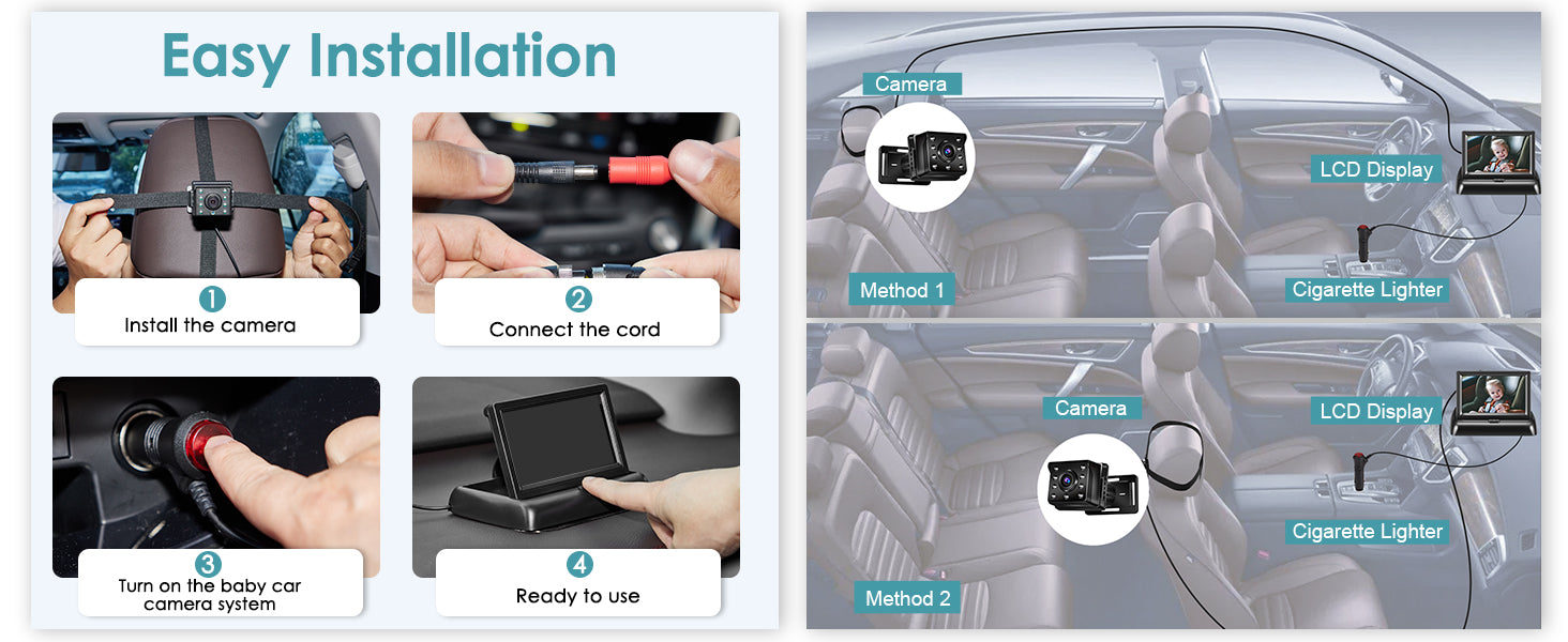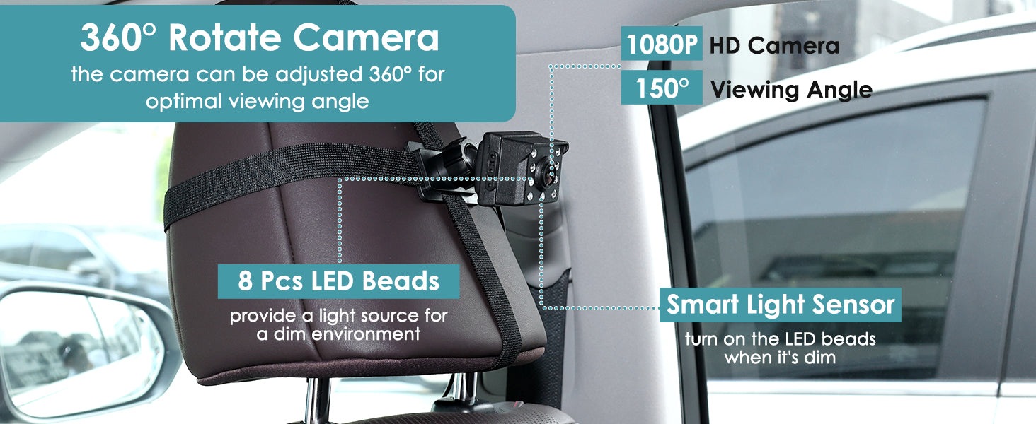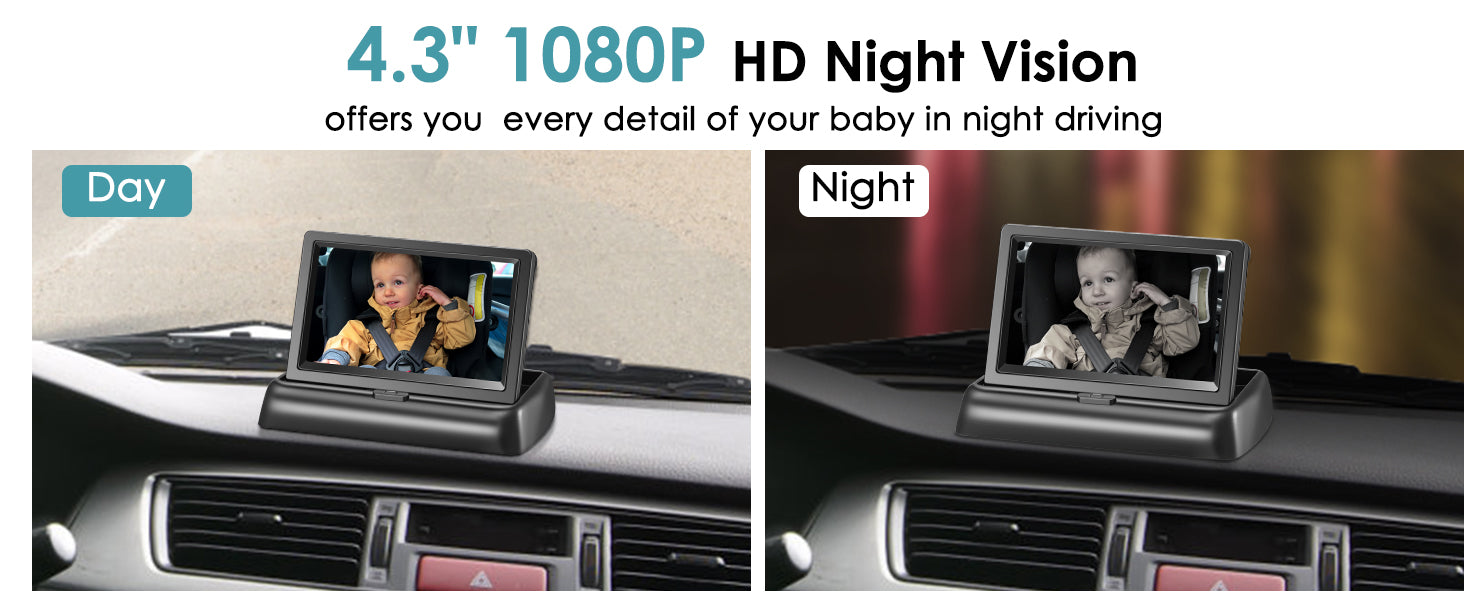 Zacro Baby Car Mirror, 4.3" Car Mirror Display, Baby Car Camera with HD Night Vision Function, 150°Viewing Angle, 360°Adjustable Car Seat Mirror Camera, Sticky Pad Mount