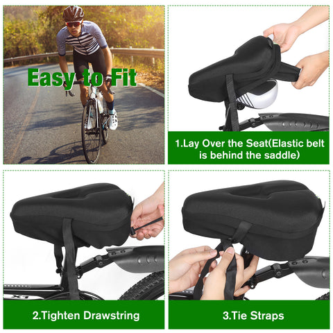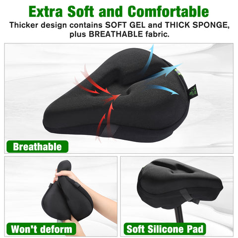 - 👍 【Large Gel Bike Seat Cushion Covers】Soft gel bike seat cushion is padded with environmentally friendly transparent silica gel, and surface is made of stretchy Spandex fiber material.