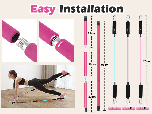 Zacro Pilates Bar Kit with Resistance Bands, 3-Section Pilates Bar with Adjustable Strap, Door Anchor, Handles and Foot Strap, Portable Home Gym Pilates Resistance Bar Kit for Full Body Workouts