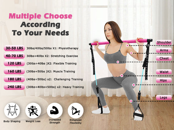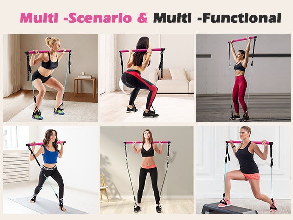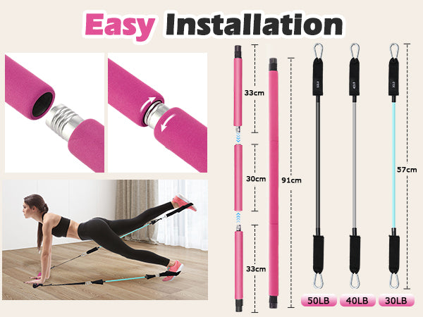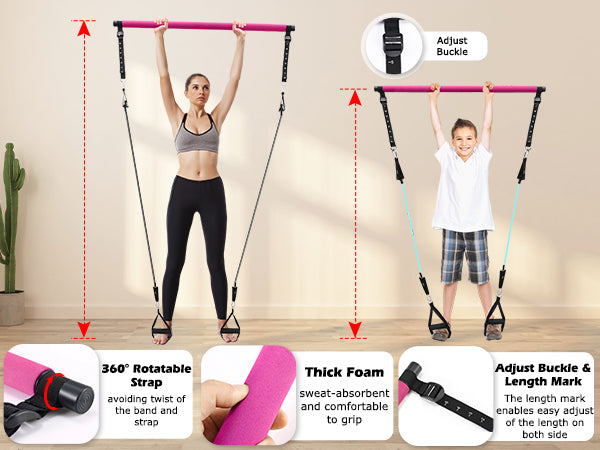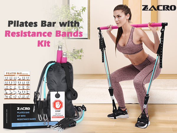 Zacro Pilates Bar Kit with Resistance Bands, 3-Section Pilates Bar with Adjustable Strap, Door Anchor, Handles and Foot Strap, Portable Home Gym Pilates Resistance Bar Kit for Full Body Workouts