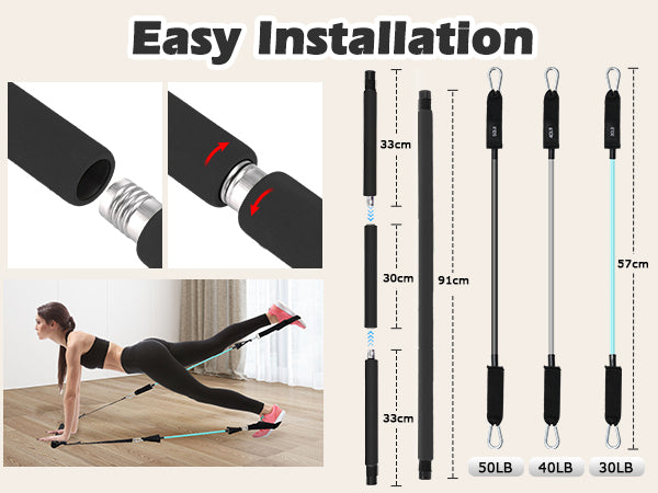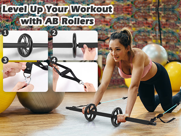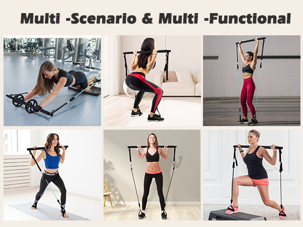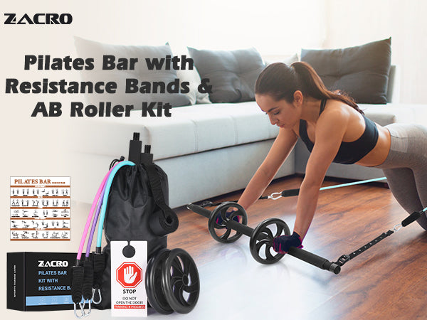 Zacro Pilates Bar with Resistance Bands, Pilates Bar with Ab Roller for Abs Workout, with 3 Level Resistance Bands, Portable Home Gym Yoga Pilates Bar Kit for Full Body Workouts for Women and Men